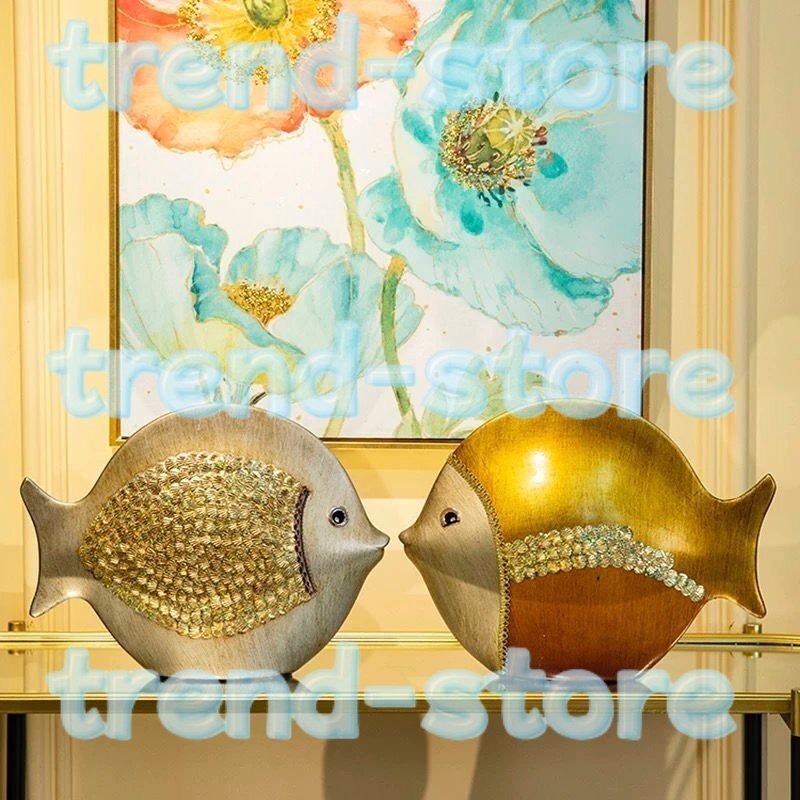 極美品★アイデア家庭装飾品陶器客間工芸品恋人同士魚