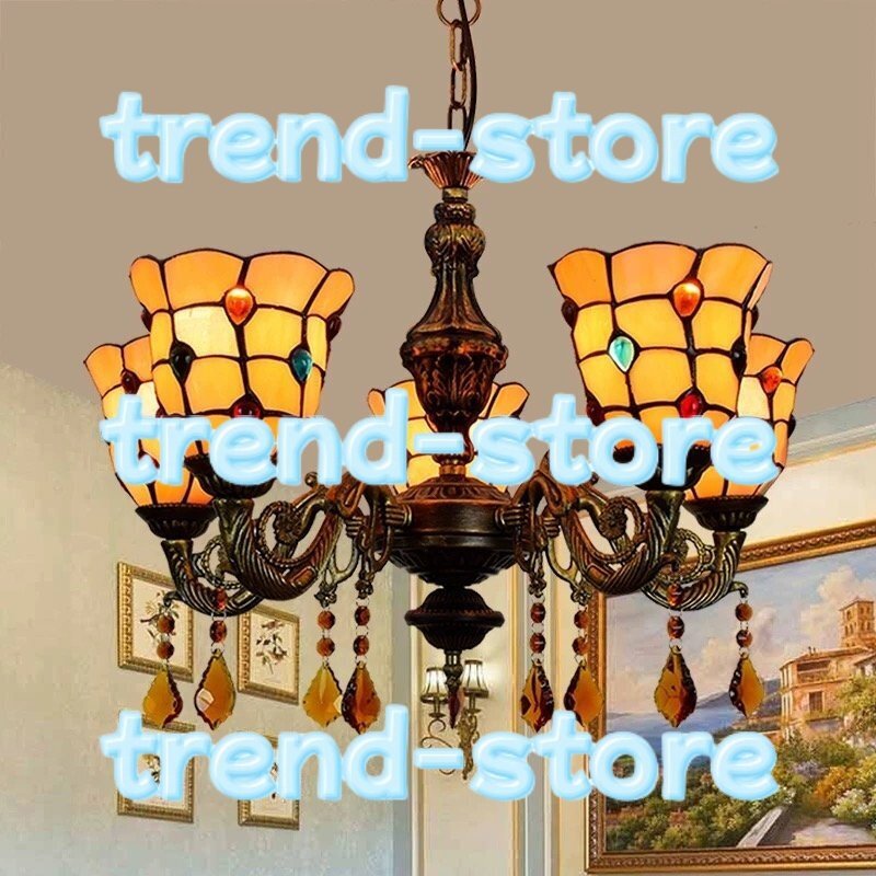 極美品★ チョウチョウ ステンドグラス.ペンダントライト豪華天井照明ステンドグラスランプ ガラス工芸品5灯