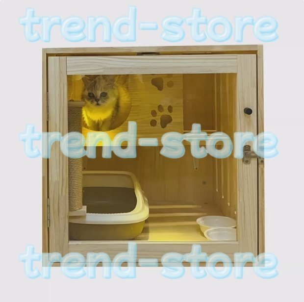 大好評★猫のアパートへ キャットベッド 松で作られた未塗装の家 3点セット 60x60x60cm キャットハウス 無垢材の猫のケージ