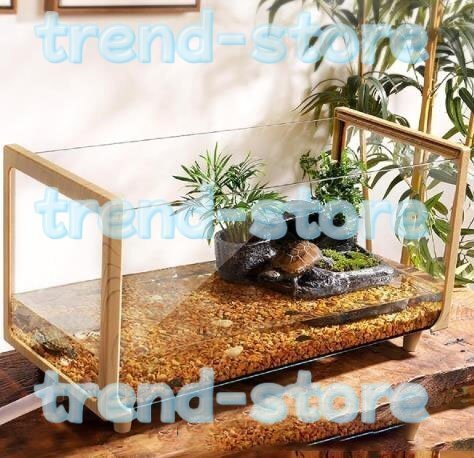 【ウッドテクスチャフレーム+ガラス】亀箱の底部は上げ脚で設計されており、ガラス亀箱が直接落下するのを防ぎ、角は磨かれ滑らかで、偶発的な怪我を防ぎます。