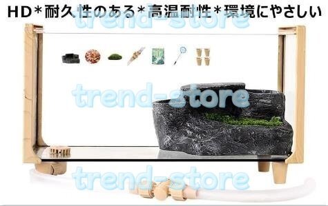 【高精細透明ガラス】:水陸両用テラリウムオープンガラス水族館、透明なデザイン、ペットのあらゆる動きを時間内に観察するのに便利、透明は優れた観察効果と硬度を提供し、ペットのカメを観察および観察するのに最適です。