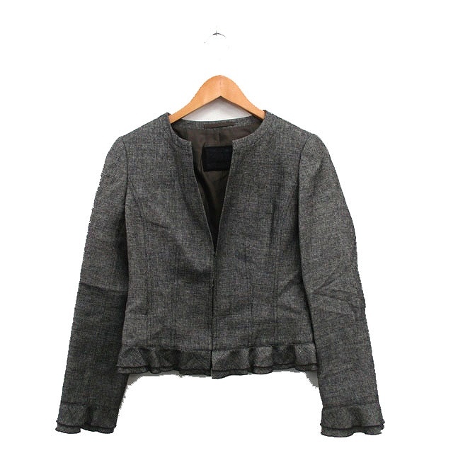 ポールスチュアート PAUL STUART ノーカラー ジャケット ウール シンプル 6 グレー 灰 /KT26 レディース