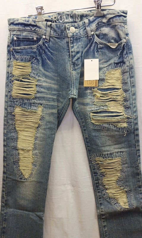ROLLINのダメージジーンズです。 90070013 新品 サイズ(2) 綿:100% INB色 (平置き実寸です)ウエスト:84cm 股上:23cm股下:81cm 裾幅:20cm ワタリ:28cmダメージ部分の裏側はデニム生地付きです。平置きで実寸を図ってあります。定価¥8690です水曜日は定休日ですので、連絡、発送等の取引業務は 出来ませんのでよろしくお願い致します。 定休日以外連絡可能な時間は、11時~18時迄です。