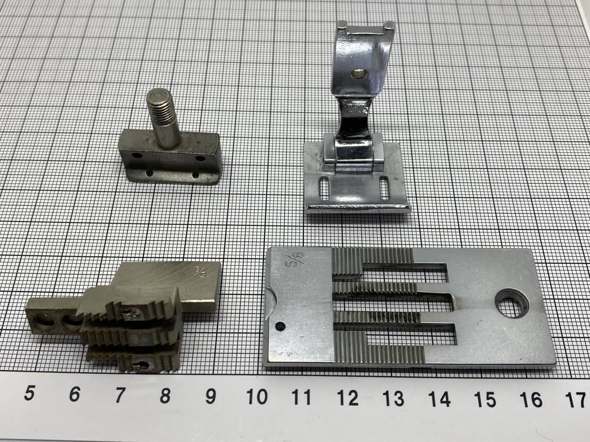 工業用ミシン 部品 2本針本縫い用 針抱き組 針板 送り歯 押え組 4点セット 5/8 | |