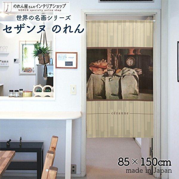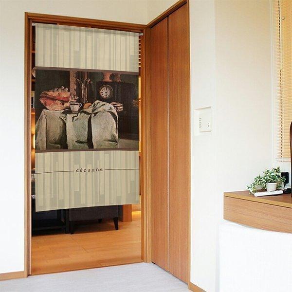 のれん 洋風 絵画 85cm幅 150cm丈 暖簾 油絵 洋画 名画 名作 間仕切りカーテン タペストリー セザンヌ 黒い置き時計(受注生産 91847)
