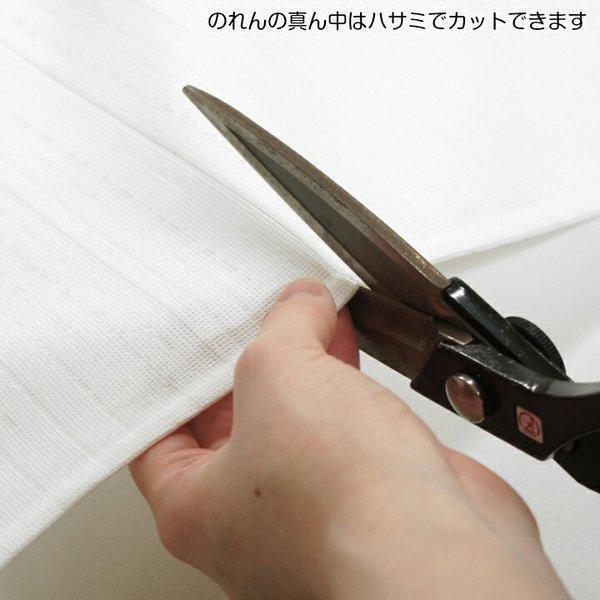 割れについて:最初から割れ目のないのれんです。カットラインに沿ってハサミで切り込みを入れることもできます。