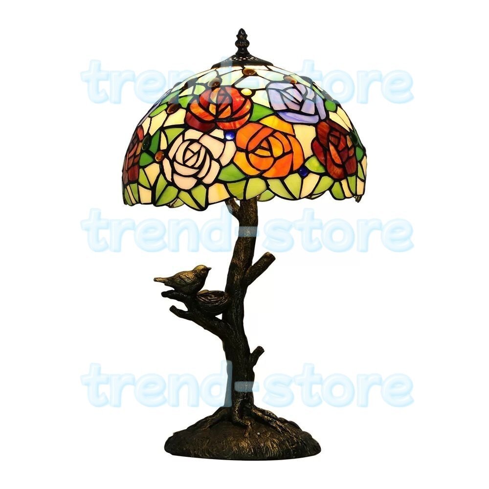 ステンドランプ Rose 花柄 照明 ティファニー技法 ステンドグラス レトロな雰囲気 デスクライト 室内装飾