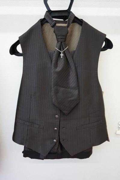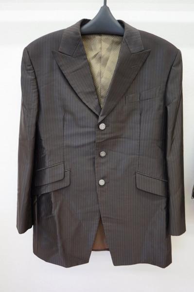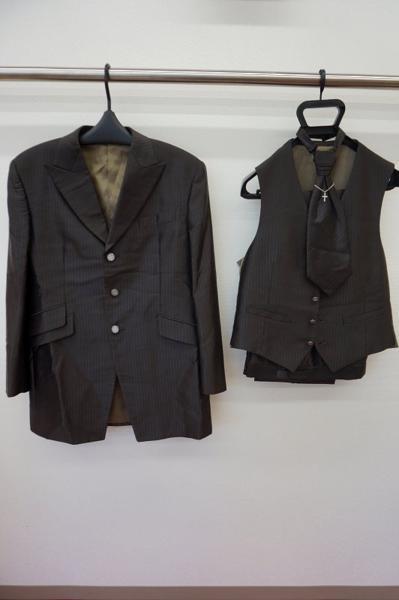 | ◇中古☆タキシード☆☆K-620-23☆ABL☆ブラウン記載/光沢ストライプ/全体的にシワが目立ちます。 |