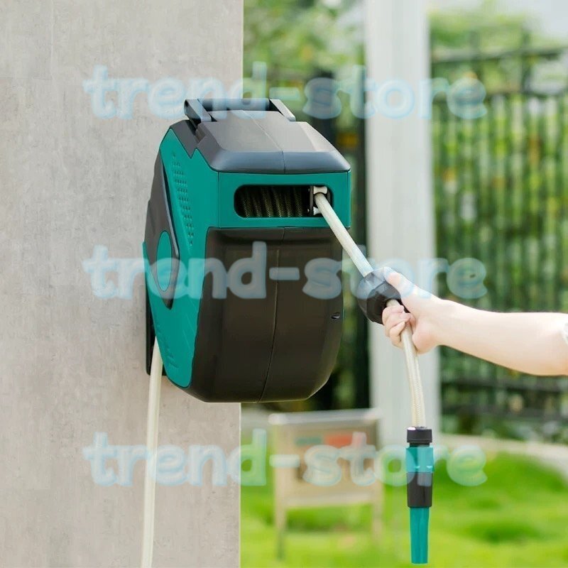 【壁掛け180度回転】当社の格納式ウォーターホースリールは、180°の金属製ブラケットを備え、多方向の散水にも十分な柔軟性があります。ビルトイン水道管の長さは15m、20m、30mメートルで、ガーデニングの操作範囲が広がります。