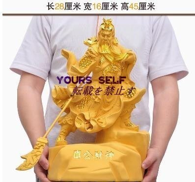 関羽像 樹脂製 (高さ46cm×巾28cm) 風水グッズ 三国志 関羽 雲長 武財神 青龍偃月刀 開運グッズ 民芸品