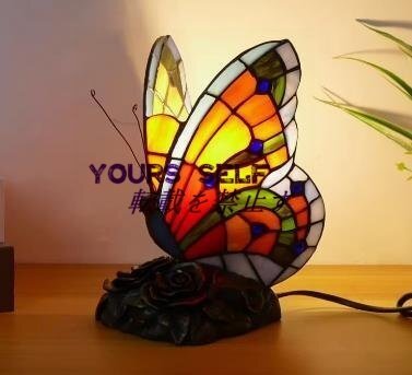 ◆新品◆芸術品◆ステンドランプ ステンドグラス 蝶 照明 ティファニー デスクライト 室内装飾