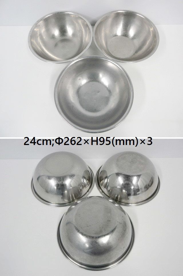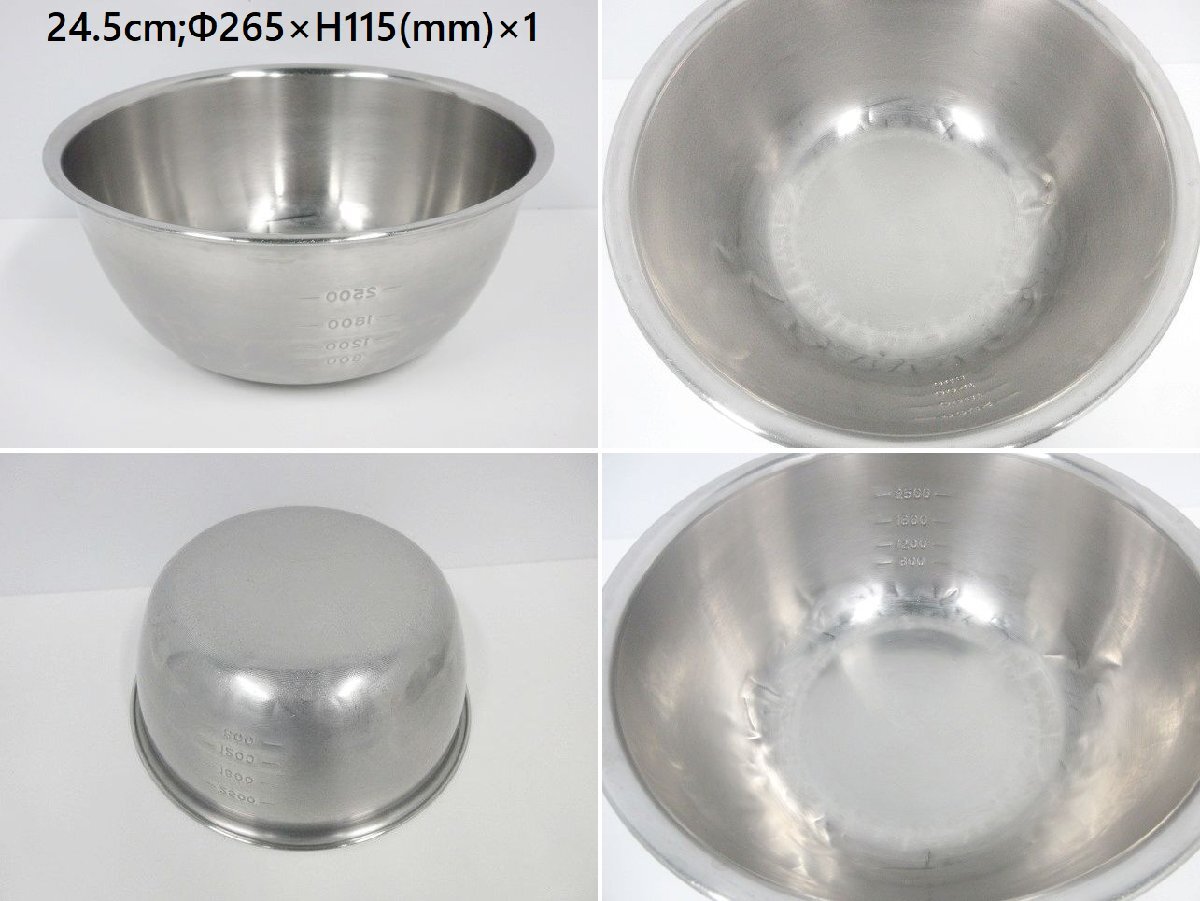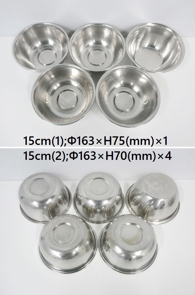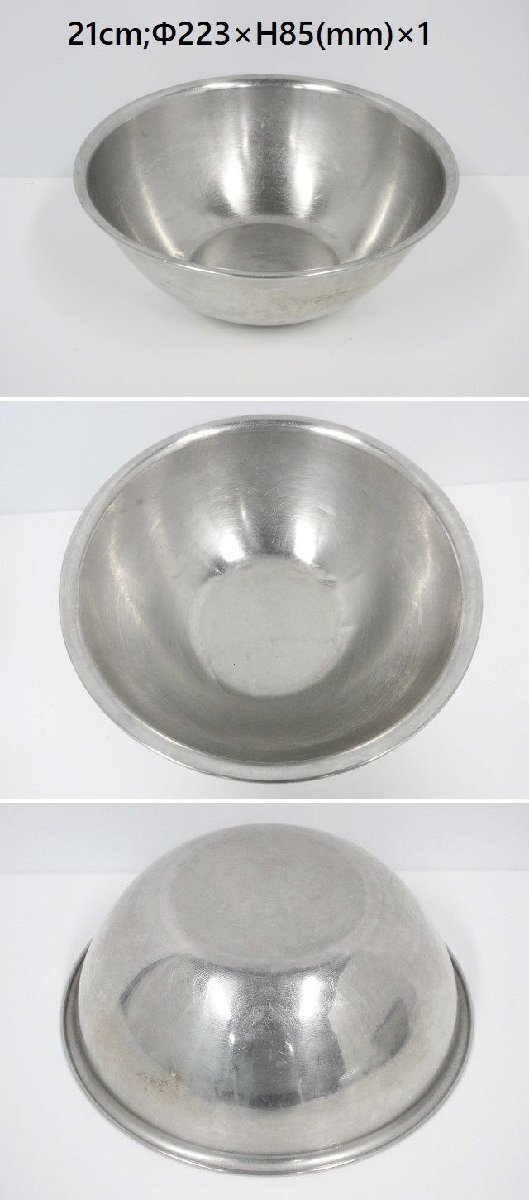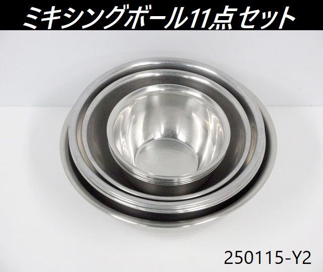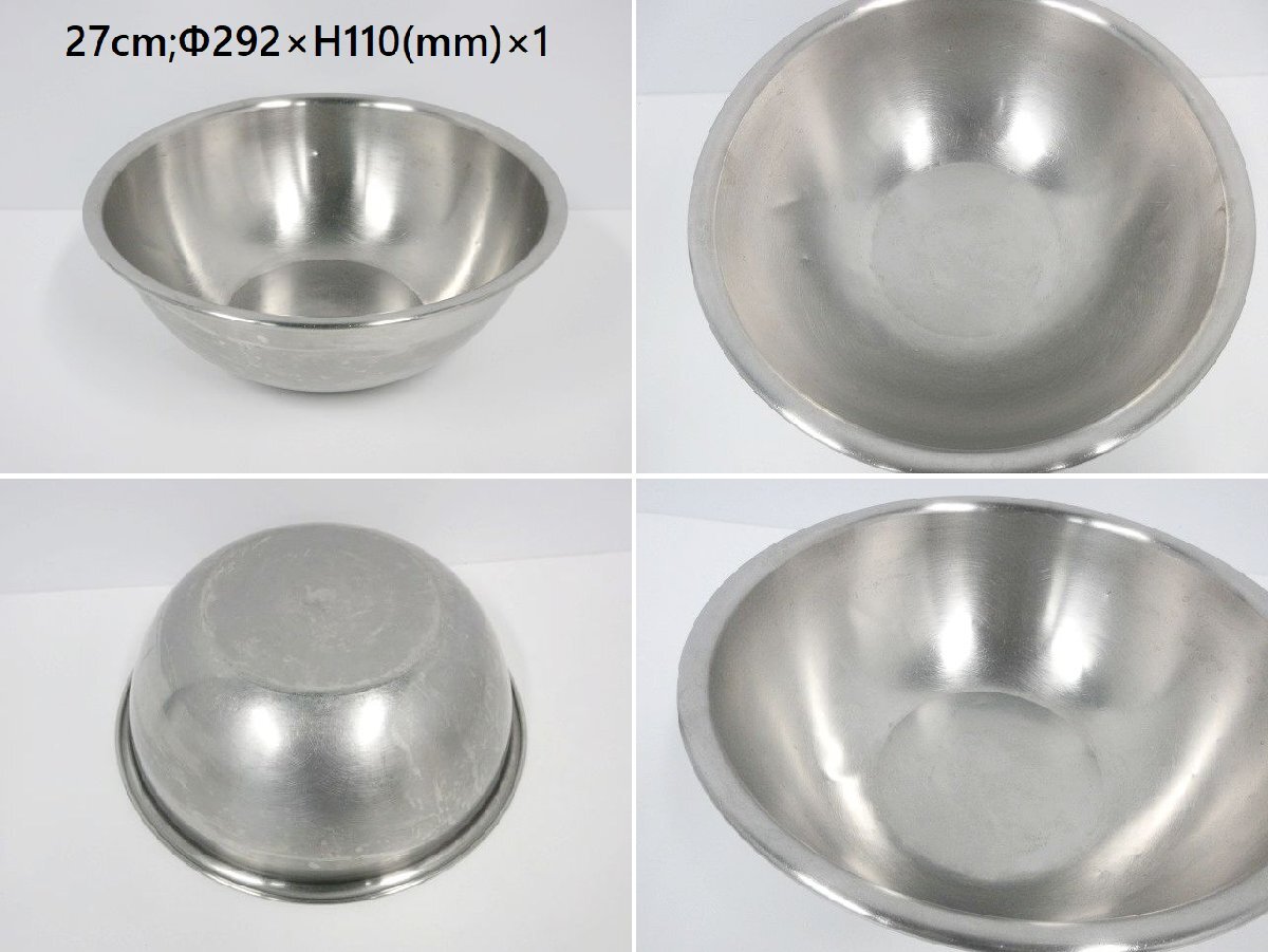 | ※送料はお客様負担となります※ ミキシングボール、サイズ違い計11点セットです。 サイズ27cm,24.5cm,24cm×3,21cm,15cm×5の計11点になります。 混ぜたり、練りこんだり、ドレッシングを作ったりするのに便利な大きさです。 丈夫なステンレス製なので、耐久性・耐熱性・耐食性に優れています。 11点セットでの販売となり、ばら売りは対応しておりません。 寸法は当方が手作業にて計っております。多少の誤差はご容赦ください。 商品の現物確認や直接のお引取りも大歓迎です。お気軽にお問い合わせ下さい。 ◆仕様