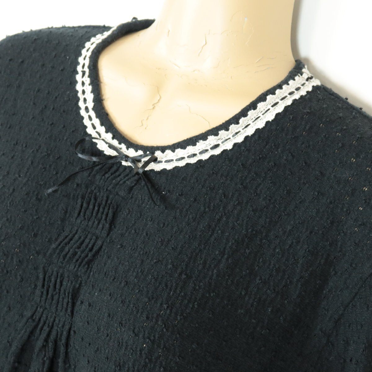 | 商品説明 | 【実寸約】肩幅43袖丈54バスト102着丈54(cm) 【サイズ表記】 L 【素材】綿99ポリウレタン1 【状態】普通の使用感のあるお品物 着用感やや強め。 ポンポン飾りにほつれ感あり。 【デザイン】 黒系 大人可愛いカットソー、サマーセーターです。 襟ぐりの白いはしごレースにサテンのミニリボン、ゆるくカーブしたピンタックなどピンクハウスらしい飾りが満載♪ 裏地なし。肩パッドなし。ポケットなし。 これ一枚でもレイヤードでもロマンティックコーデに大活躍するアイテムです。 |