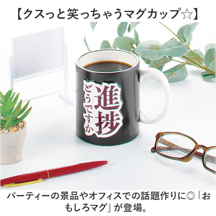 | 商品説明 | ・・【クスっと笑っちゃうマグカップ☆】 ・パーティーの景品やオフィスでの話題作りに◎「おもしろマグ」が登場。 ・【選べる豊富なおもしろさ!】 ・パッと目を惹く、インパクトのあるデザインが魅力。自分にぴったりの1つをチョイス☆ ・【思わず笑っちゃうメッセージ性】 ・見た目はもちろん、ちょっと自虐ネタっぽいメッセージ性がおもしろい!話題性バツグン! ・【いろんなシーンで大活躍!】 ・持っているだけで、楽しい空間に早変わり!お家で家族と、会社で同僚と、宅飲みでお友達と♪ ・【ギフトや景品にぴったり☆】 ・パーティーの景品や、ジョーク混じりの贈り物に♪笑顔になってほしい方へのギフトに◎ |