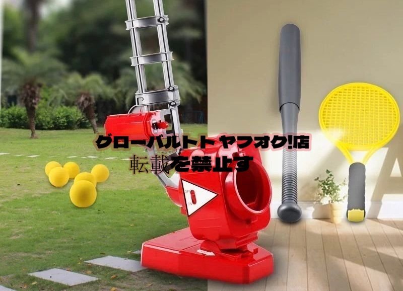 野球自動ピッチングマシン、5-7s/ボール屋外ソフトボールトレーナーマシン、テニスラケット、野球バット、ボール6個、テニス、野球用の4