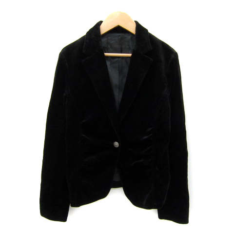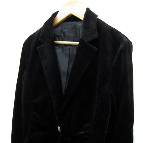 アンタイトル UNTITLED テーラードジャケット ミドル丈 ベロア 無地 シングルボタン 総裏地 2 黒 ブラック /SY24 レディース