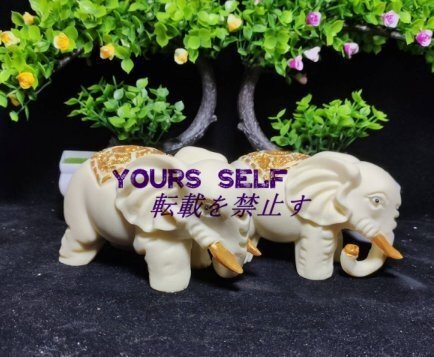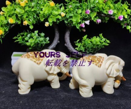 新品 象 置物 縁起物 彫刻 超絶技巧 2点セット