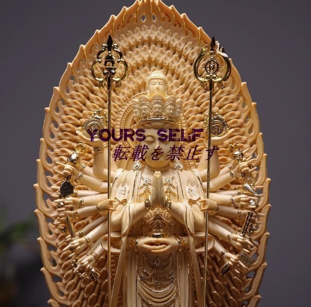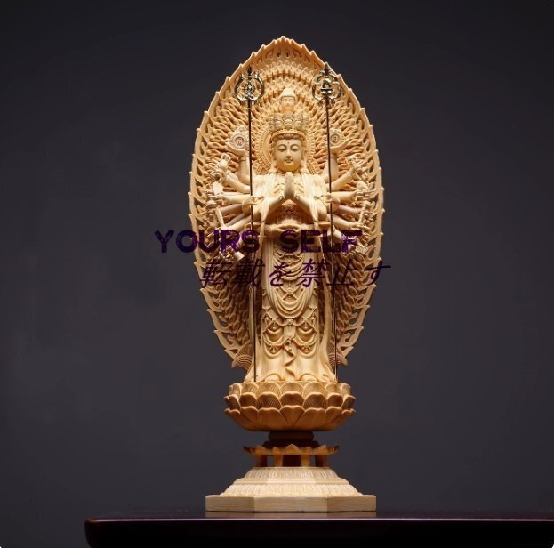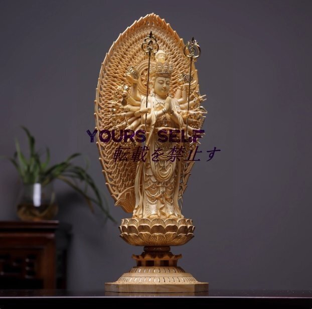 仏像 千手観音菩薩立像 お盆用品 仏具 お彼岸 仏像 千手観音菩薩像 千手観音像 木製 木彫り 総高43cm