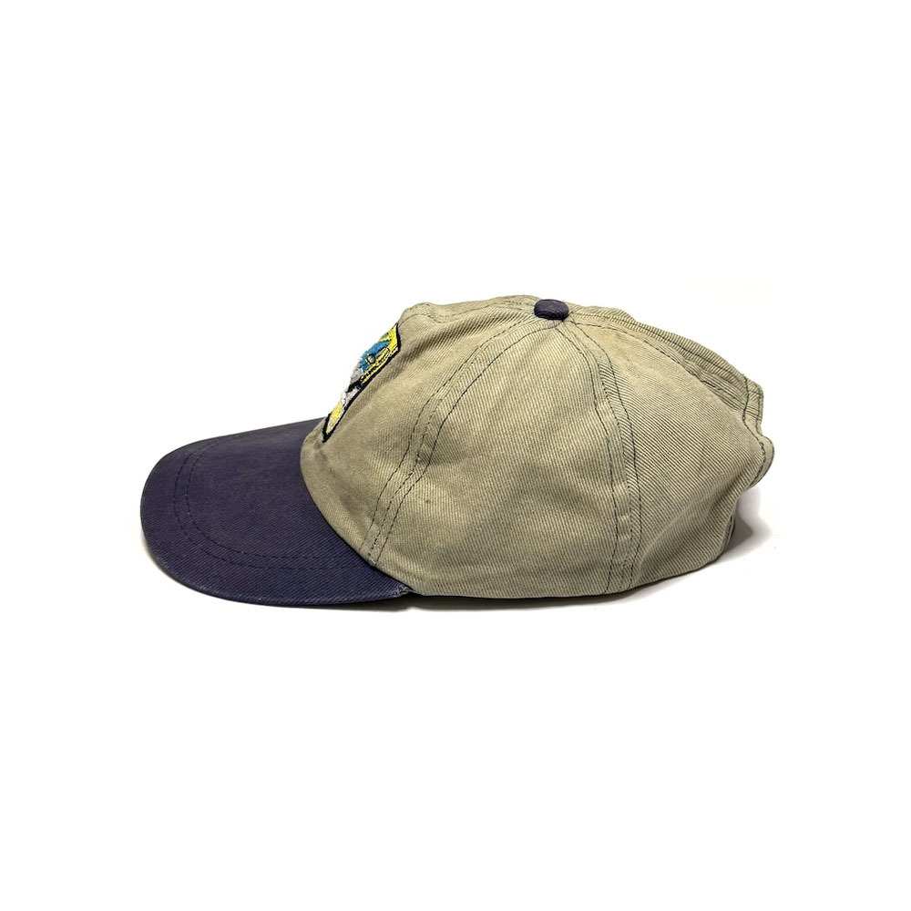 US物のボディにブランドの代表的なグラフィックが刺繍されたキャップ。ボディの2トーンカラーがイナたく、当時のスケーターファッションを思わせます。恐らく今は同じものに出会える可能性が非常に低い、激レアな1品かと思います。コレクションとしても是非。
