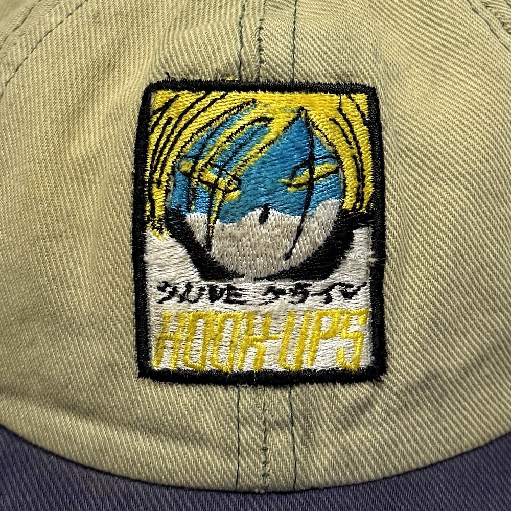 USEDの90's HOOK-UPS ジェルミ・クライン 刺繍キャップです。HOOK-UPS はスケーター Jeremy Klein によって90年代に立ち上げられたストリートブランド。クラインが大好きな日本アニメに影響を受けてデザインしたグラフィックが非常に印象的。近年ではVirgil Ablohなどが着用していたこともあり、スケートブランドのコアなファン以外にも注目を集めています。