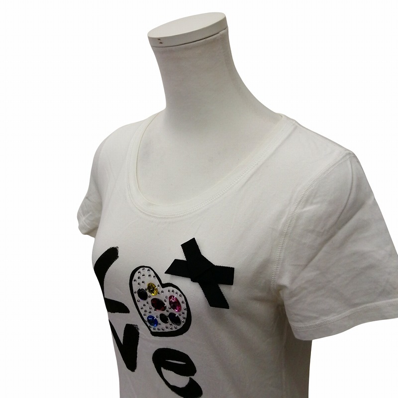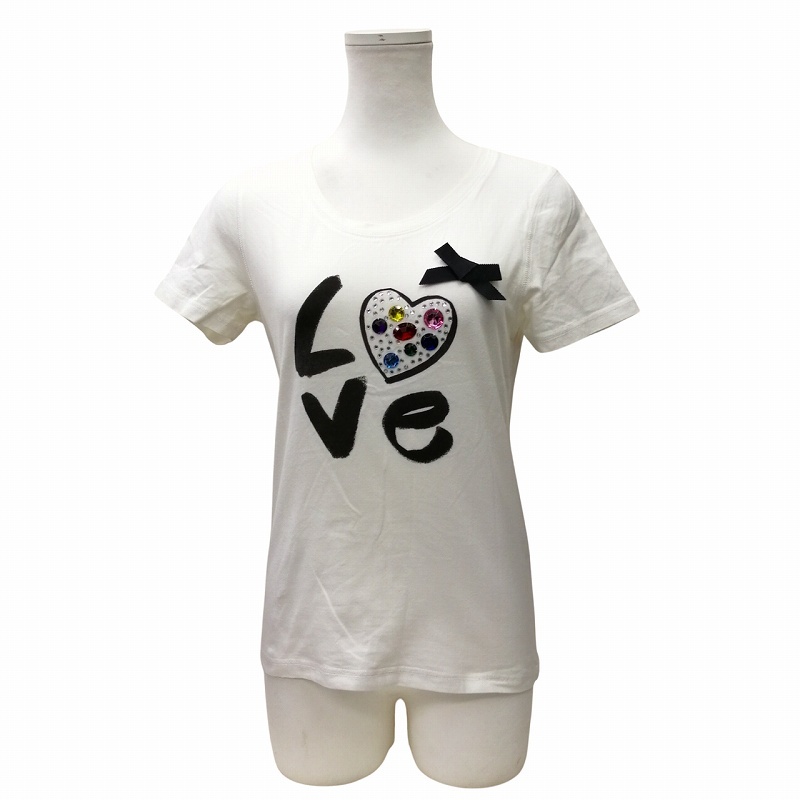 ソニアリキエル SONIA RYKIEL LOVE 半袖 Tシャツ 装飾 リボン コットン ホワイト 38 Sサイズ相当 ■GY09 レディース