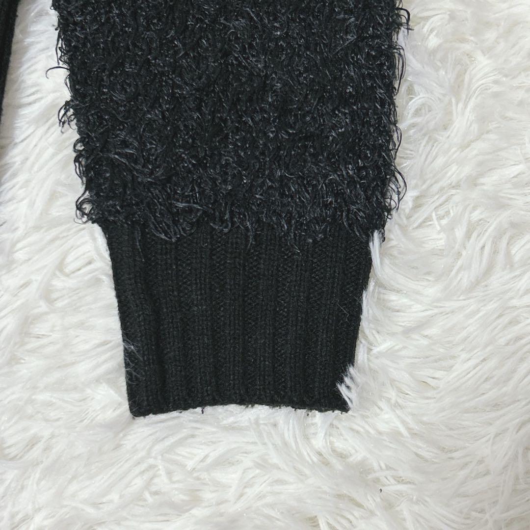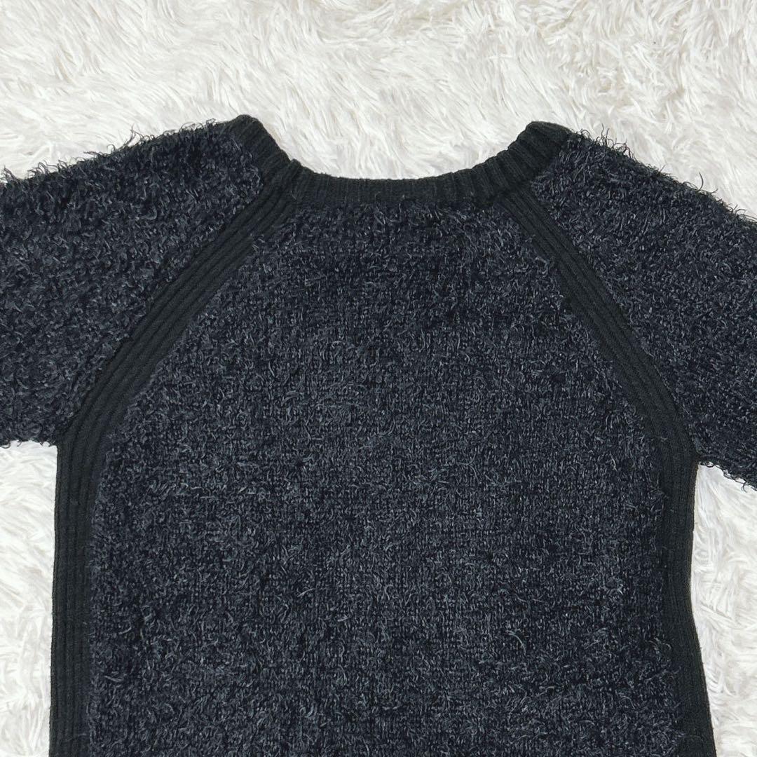 フワフワのニット素材を使用した、ラグランスリーブのブラックセーター。
