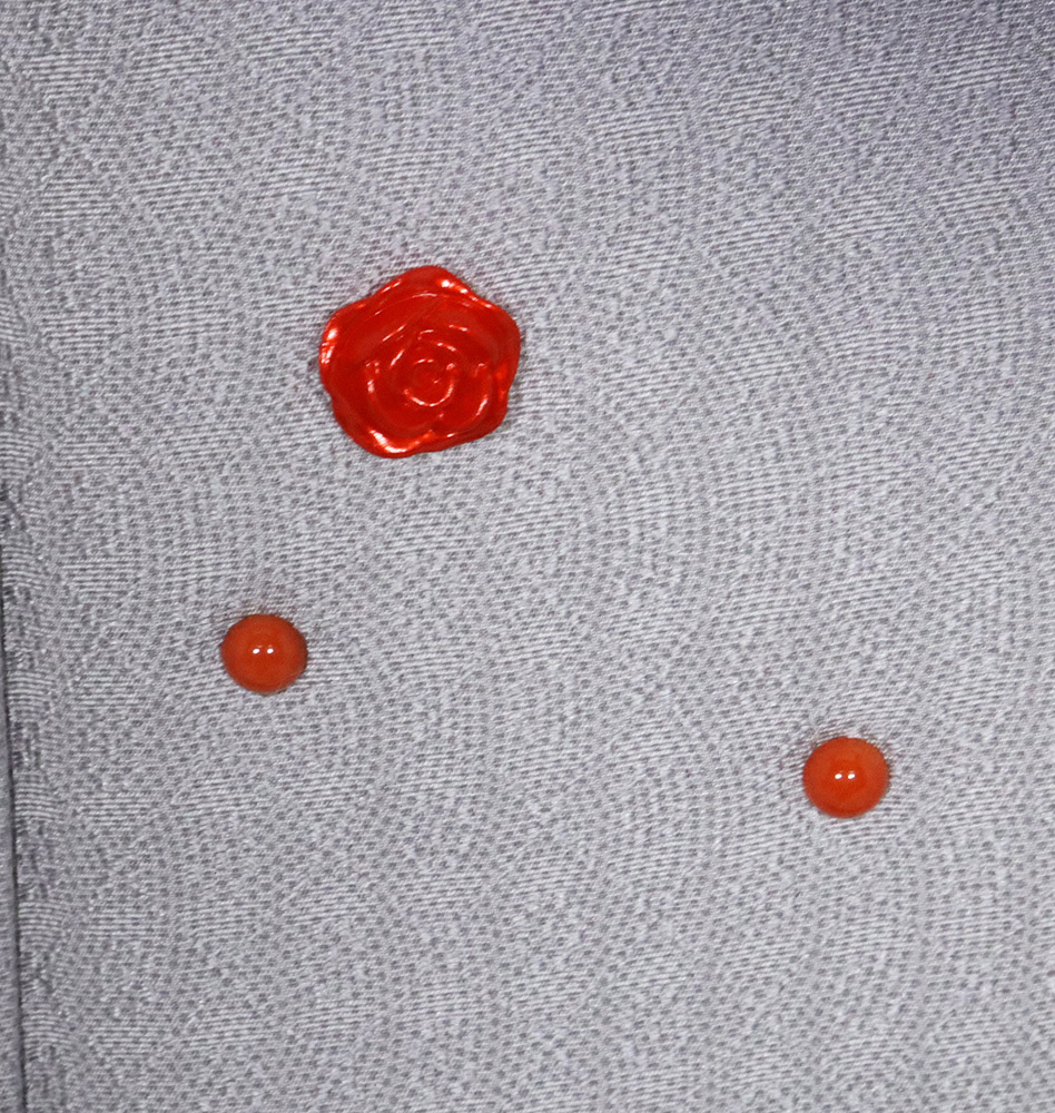 | 色・柄 | 訪問着 袷 丹後縮緬地 黒(黒檀色)・ライトグレー(絹鼠色)暈し地 花織風地模様地 薔薇・ビーズ (写真では上手く色が出ない場合があります。ご了承下さい) |