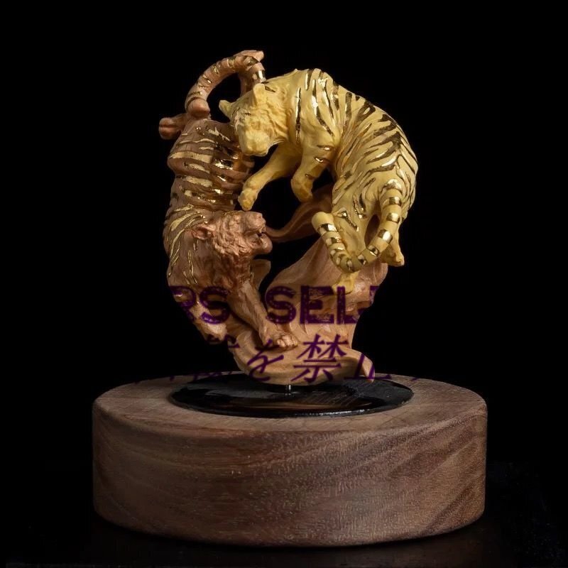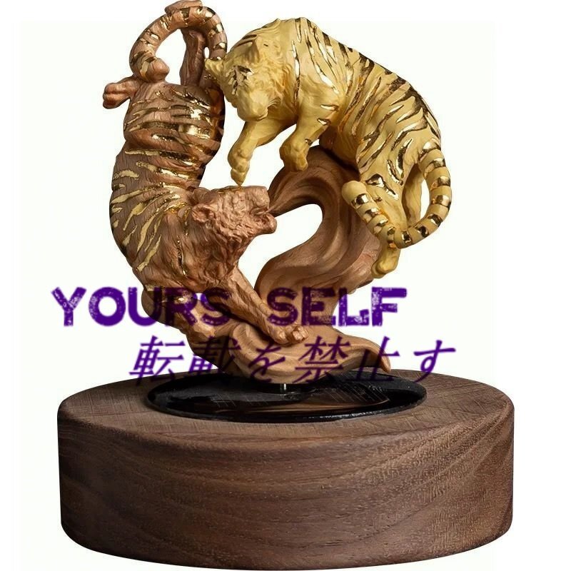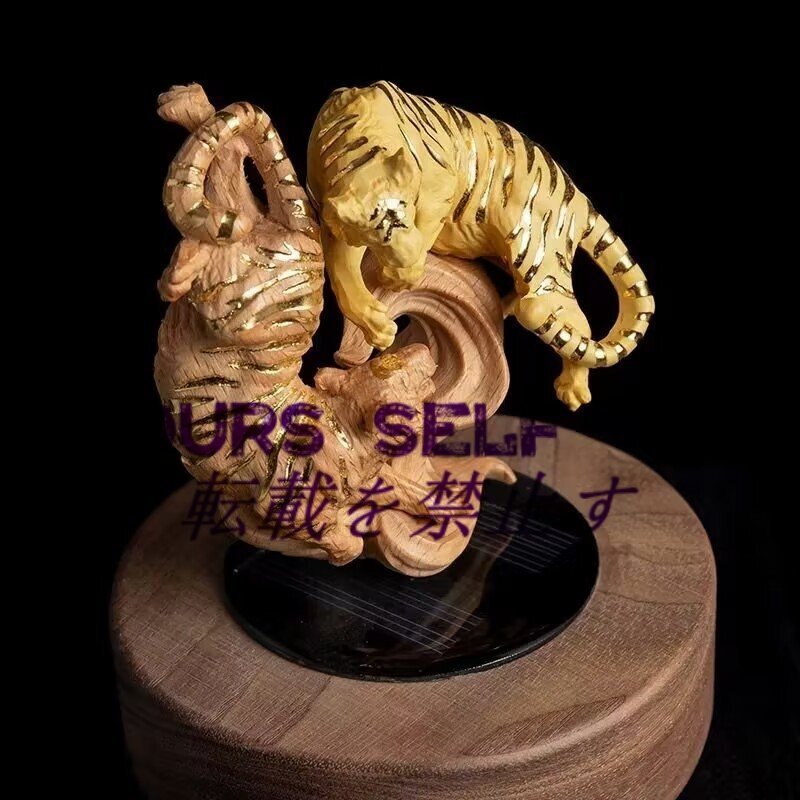 置物 干支 寅 虎 開運 トラ 本金 切金 木彫 美術工芸品 全高約31cm