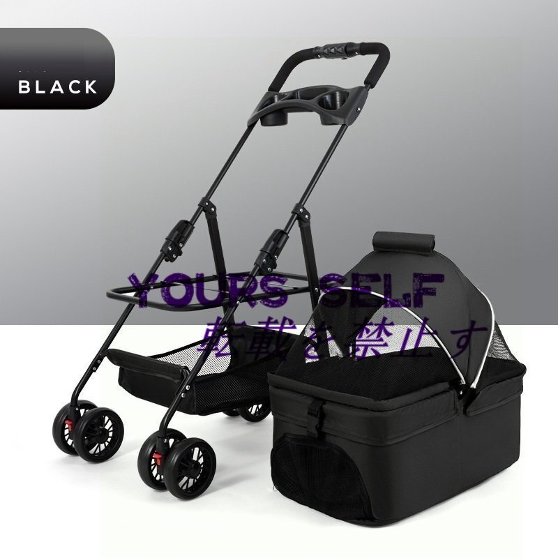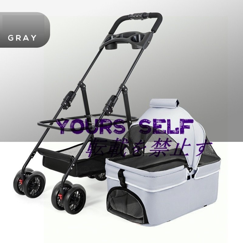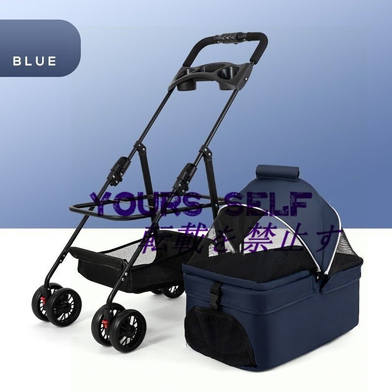 ペットカート分離式 折り畳み 4輪 ピンク ストッパー付き 小物入れ 手洗い 軽量 お出かけ 散歩 ブルー