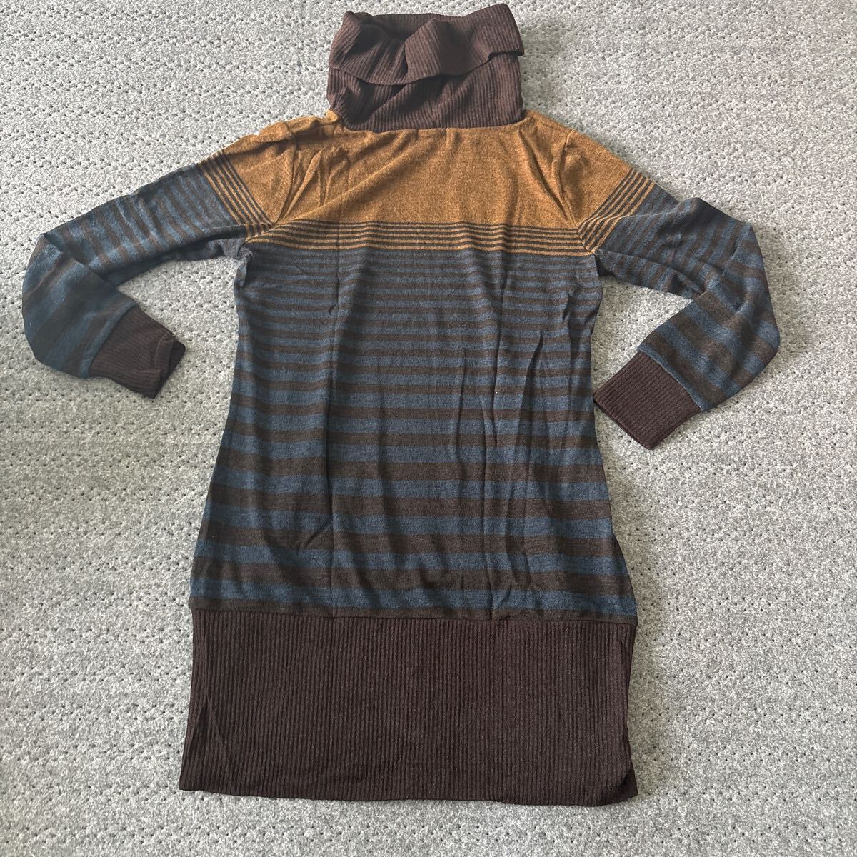 未使用●ジボール GIVORS チュニック/タートルネック/ブラウン/暖色/茶色/ボーダー 柄/長袖/ワンピース/レディース/ブランド★2565-4