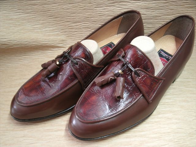 ■■■ 入札前にお読みください。 ■■■ ★ワニ柄を甲部分にあしらったタッセルシューズです。 ワニ柄が写真とは多少異なる場合がございますご了承ください。 靴底は本革を使用しております。 ☆アッパーと中底、ソールをダイレクトに縫い合わせる マッケイ製法で作られております。 靴底がしなやかで返りがよく柔らかな履き心地が特徴です。 ■展示品ですので未使用です。 なお踵部分に小さい穴がありますが これは製造時にできたものですので ご了承ください。 ※ 製造時における、傷、汚れなどがある場合があります。 又、オークション出品商品には店頭で展示している商品や試し履き された商品などもございますので、多少の汚れや履きシワがある場合 がありますのでご理解の上、入札して下さい。 ★純正の箱がございませんので別の箱に入れて送らせていただきます。 ★撮影状態やモニタの状態などで実物と色が異なる場合がありますので ご了承ください。 ★以上、ご理解いただける方は入札お願い申し上げます。 落札後は、原則としてこちらに過失がある場合以外は ノークレーム・ノーリターンでお願い致します。 なお、返送していただく場合は 送料は落札者さまに負担していただきますので ご了承ください。 (返品対応は商品到着後1週間以内とさせていただきます) |