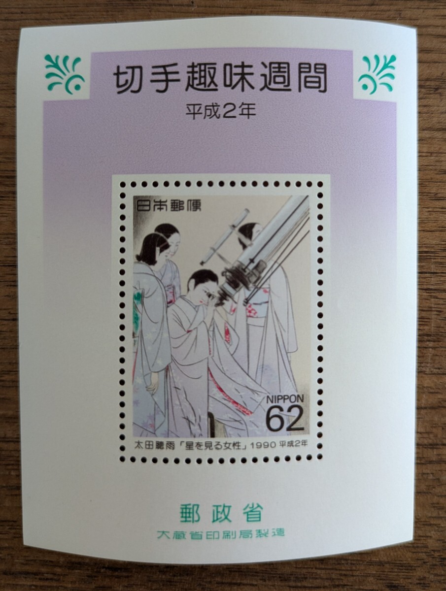 平成2年 切手趣味週間 小型シート 星を見る女性です。自宅保管の古いものですので、細かなキズなどあるかもしれません。