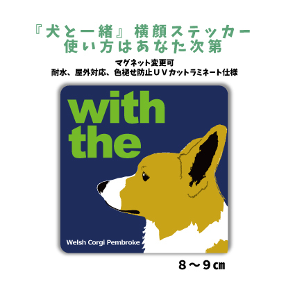 ウェルシュ・コーギー『犬と一緒』【玄関 車 ポスト】ステッカー 名入れマグネット変更可 屋外 防水 カスタマイズ