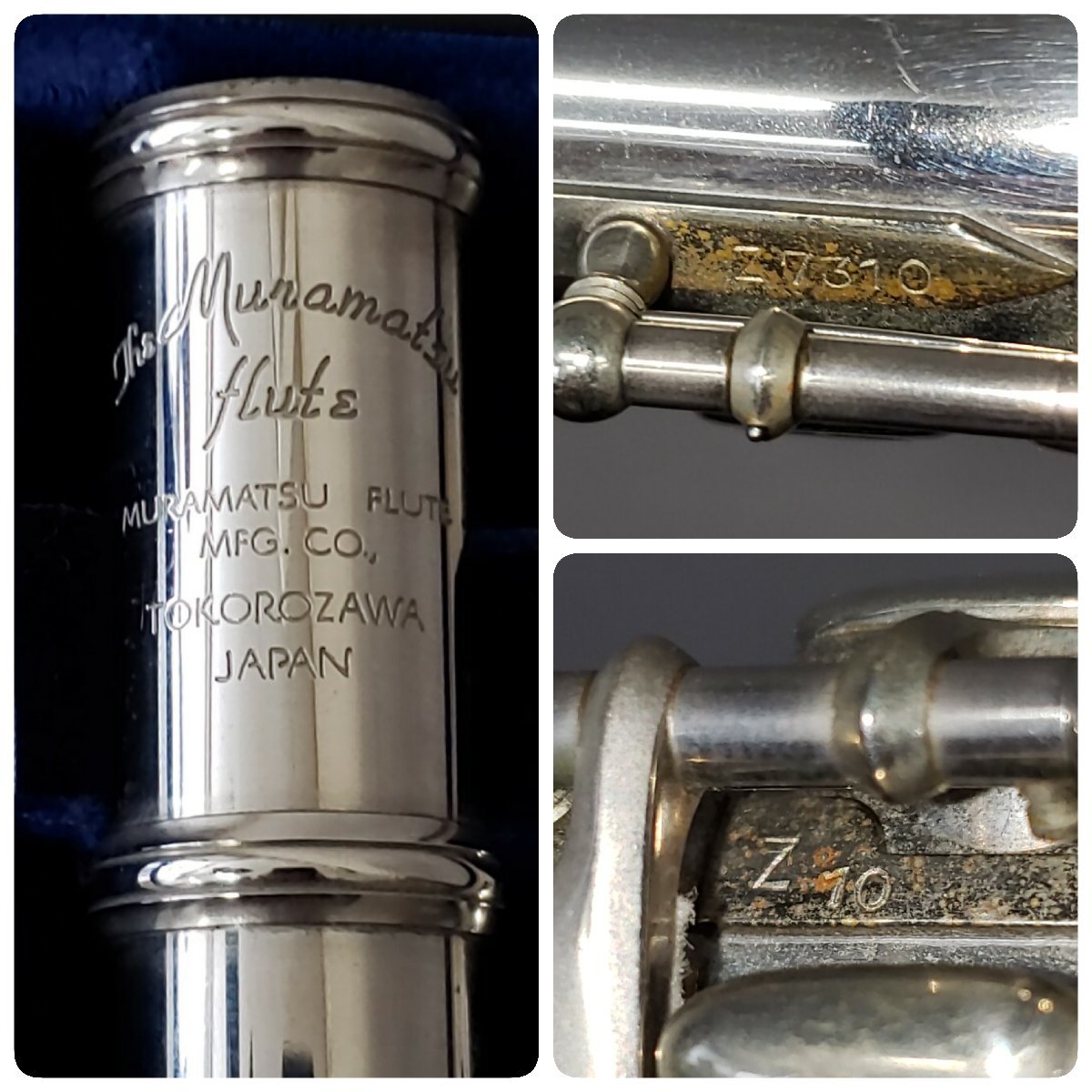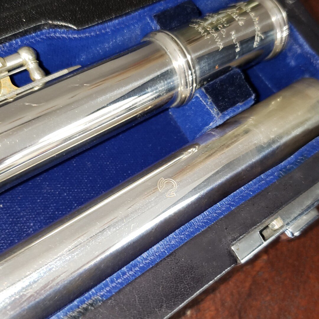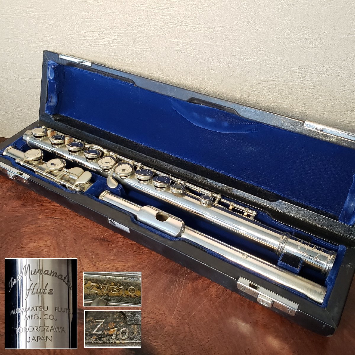 ムラマツフルートM120モデルです。z7310とz10と刻印があります。1986年造です。頭部は銀製、その他は合金です。写真の物が全てです。素人判断のため足りない部品があるかもしれません。ケースは汚れや傷、素材の劣化があります。