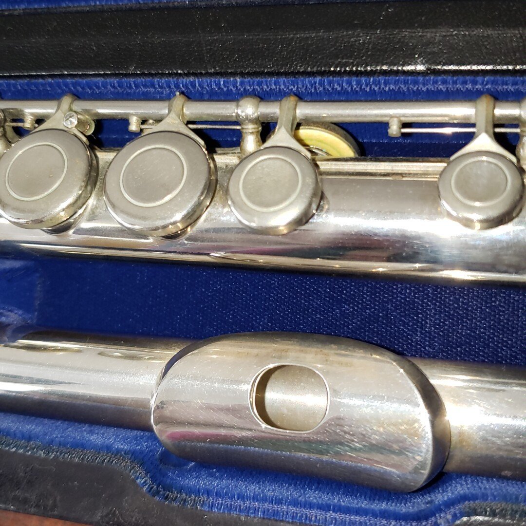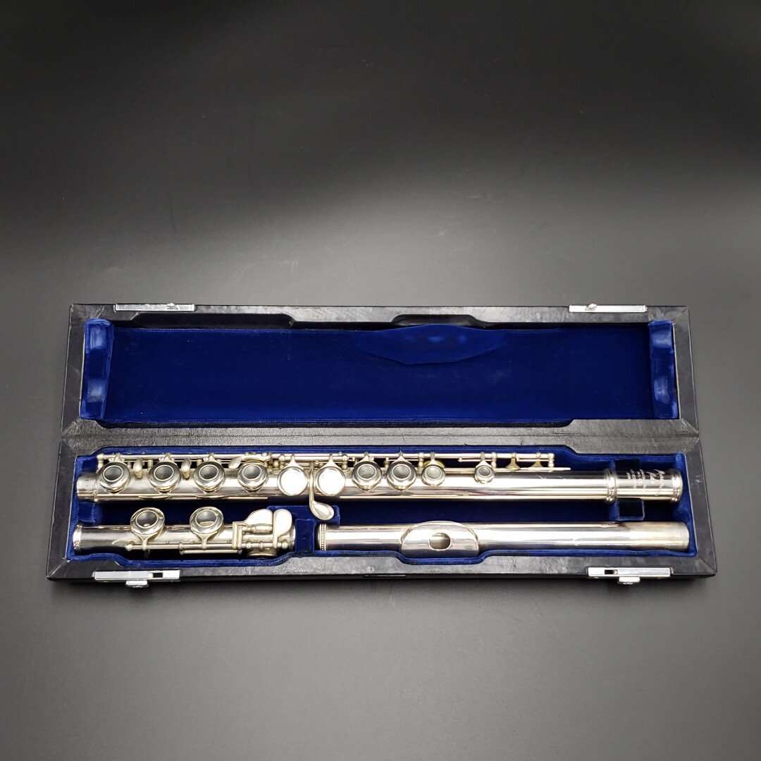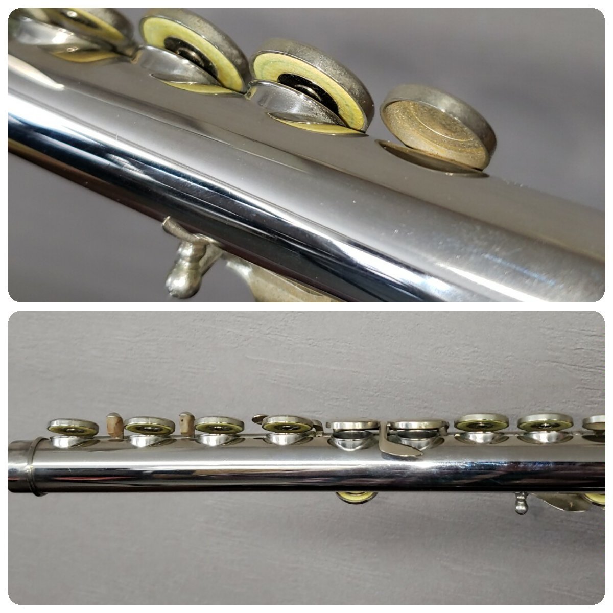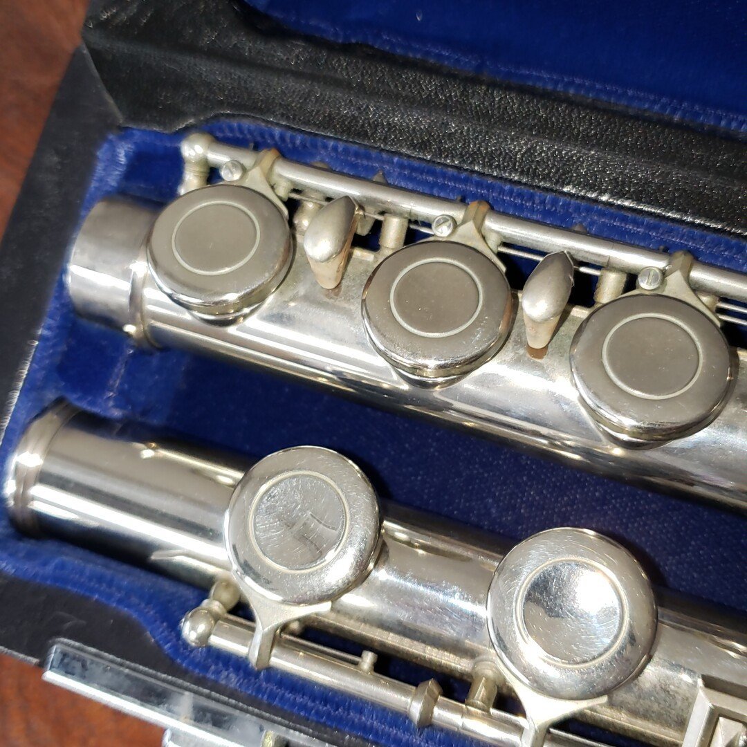 ムラマツフルートM120モデルです。z7310とz10と刻印があります。1986年造です。頭部は銀製、その他は合金です。写真の物が全てです。素人判断のため足りない部品があるかもしれません。ケースは汚れや傷、素材の劣化があります。