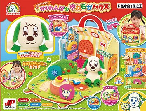 「ジョイパレット(JOYPALETTE) ワンワンとうーたん ひろげてあそぼ! かくれんぼやわらかハウス W220mm×H240mm×D130mm」▼4975201331351▼(商品説明)ワンワンとうーたん・ ワンサイズ ・対象年齢:1才以上・サイズ:W220mm×H240mm×D130mm(ハウスを閉じた時)・ワンワンとうーたんのやわらか素材で小さなお子様にもやわらかハウスです。・お部屋の中や、お庭にある「かくれんぼポケット」にキャラクターマスコットを入れてかくれんぼ遊びが楽しめます。・サンドイッチとりんごはバスケットに面ファスナーで付けられ、食事の時は切り株テーブルに置いておままごとです。説明 手ざわりふっくらのおうちで、ワンワンといっしょにかくれんぼしよう! おふろ、本棚、草むら、3つのかくれんぼポケットにマスコットを入れてかくれんぼ遊びが楽しめます。「うーたんはどこかな」ワンワンのぬいぐるみと一緒に探してみよう! 切り株のテーブルではおままごとをしよう!バスケットからりんごやサンドイッチを取り出してピクニックごっこが楽しめます。 おふろ、はみがき、トイレ、ねんねなど、ハウスの中にはお子様の身のまわりの生活習慣の場面があります。おともだちマスコットをポケットに入れて「おふろに入ろうね」と声をかけたり、おふとんに寝かせたり、1日の流れを感じながら遊べます。 やわらかハウスは、閉じるとかわいいハウス型になります。面ファスナーで留めて小さなお子様にも簡単おかたづけ!取っ手付きなので持ち運びも便利です。