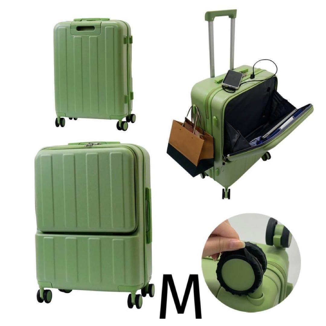 【4色/Mサイズ】スーツ ケース キャリー 荷物掛け付き USB ポート フロントオープン