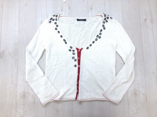 クリツィアマグリア KRIZIA MAGLIA イタリアン ラグジュアリー ビーズ刺繍 ざっくりVネック コットンニット カーディガン レディース 42 白 です。
