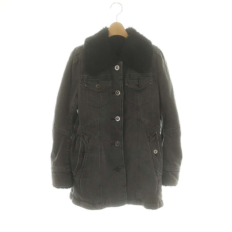ヒステリックス Hysterics フェイクファーボアデニムジャケット Gジャン ミドル丈 F グレー 黒 ブラック /DO ■OS レディース