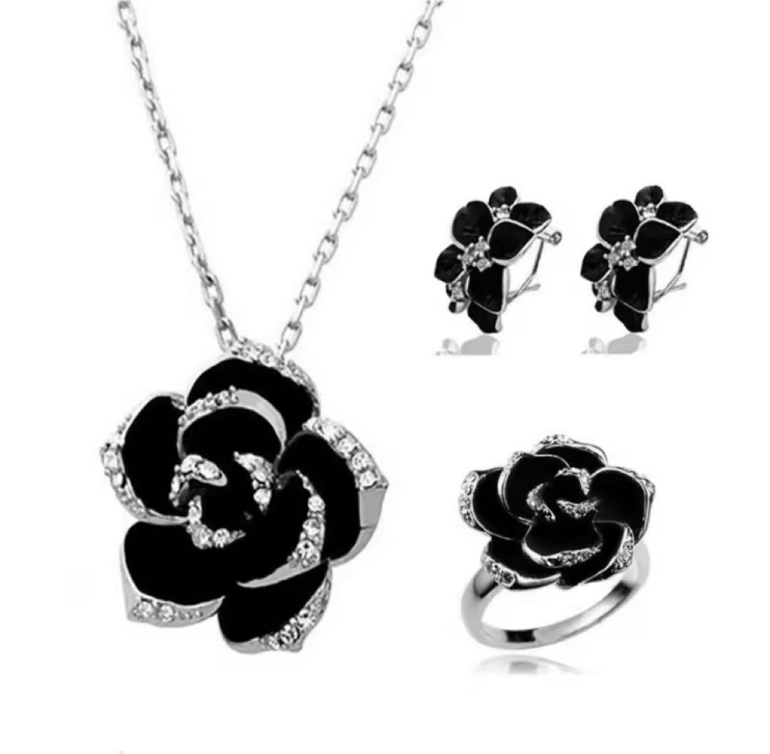 248★新品未使用★レディース 3点セット フラワー ネックレス ピアス リング シルバー 花 ジュエリー アクセサリー シンプル かわいい