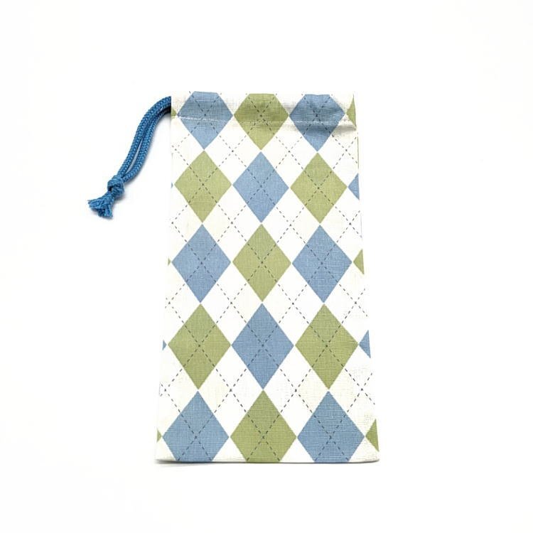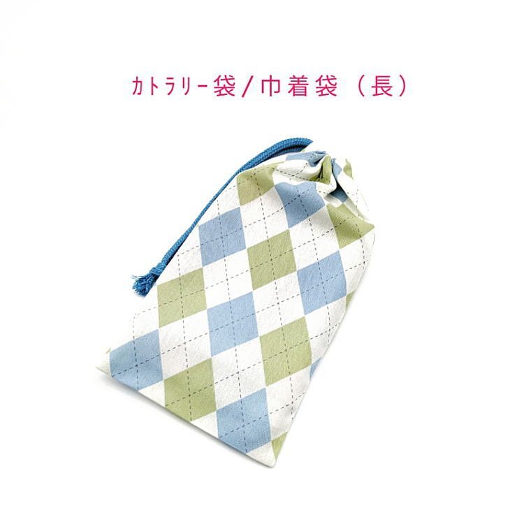 カトラリー袋・巾着袋 長方形【アーガイルチェック柄 グリーン×ブルー】カトラリーケース 箸袋 はし袋 コップ袋 ポーチ チェック