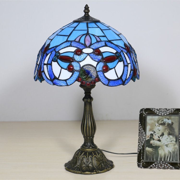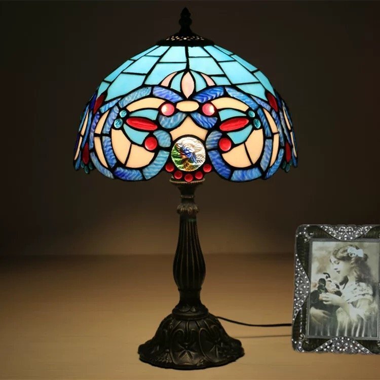 極美品★ステンドランプ ステンドグラス レトロな雰囲気 ティファニー技法 花柄 照明 アンティーク テーブルスタンド 室内装飾