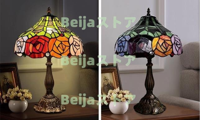 ◆稀少品◆芸術品◆ステンドランプ Rose 花柄 照明 ステンドグラス レトロな雰囲気 ティファニー技法 室内装飾 テーブルスタンド