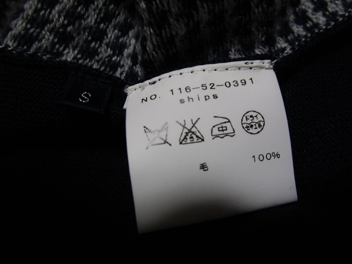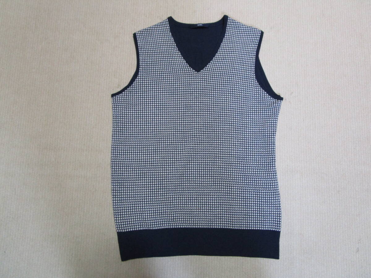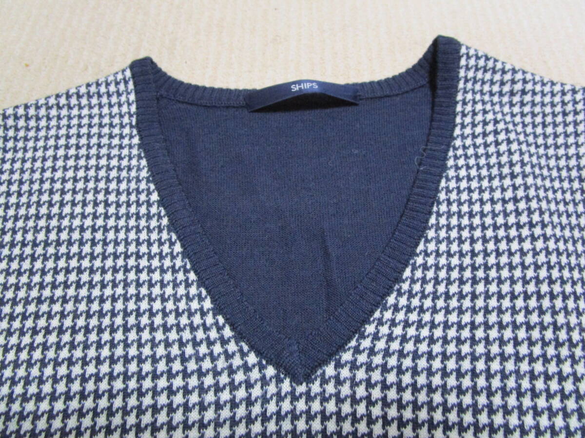 超特価!美品即決!SHIPS シップス メンズ ハイゲージ ウールニット ドレス ベスト 千鳥格子柄 NAVY系 size S