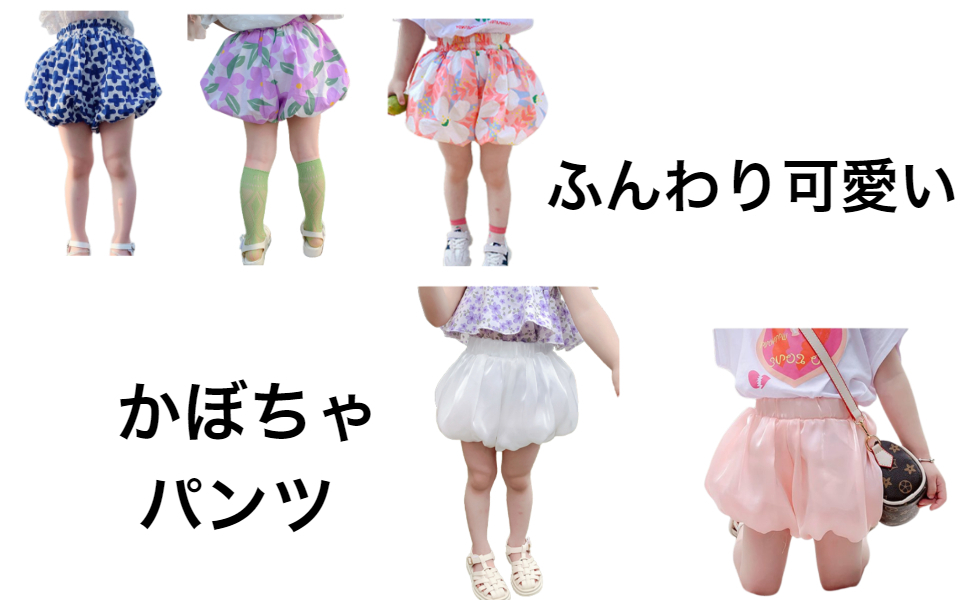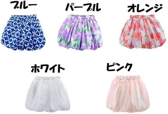 サイズ90/100/110/120/130/プリントデザイン5種ウエスト平ゴム 白無地綿裏地付きふんわりシルエット かぼちゃパンツ バルーンパンツ ブルマー表地 ブルー オレンジ パープル 綿 100%裏地 ブルー オレンジ パープル 綿 100%表地 ホワイト ピンク レーヨン コットン裏地 ホワイト ピンク 綿 100%
