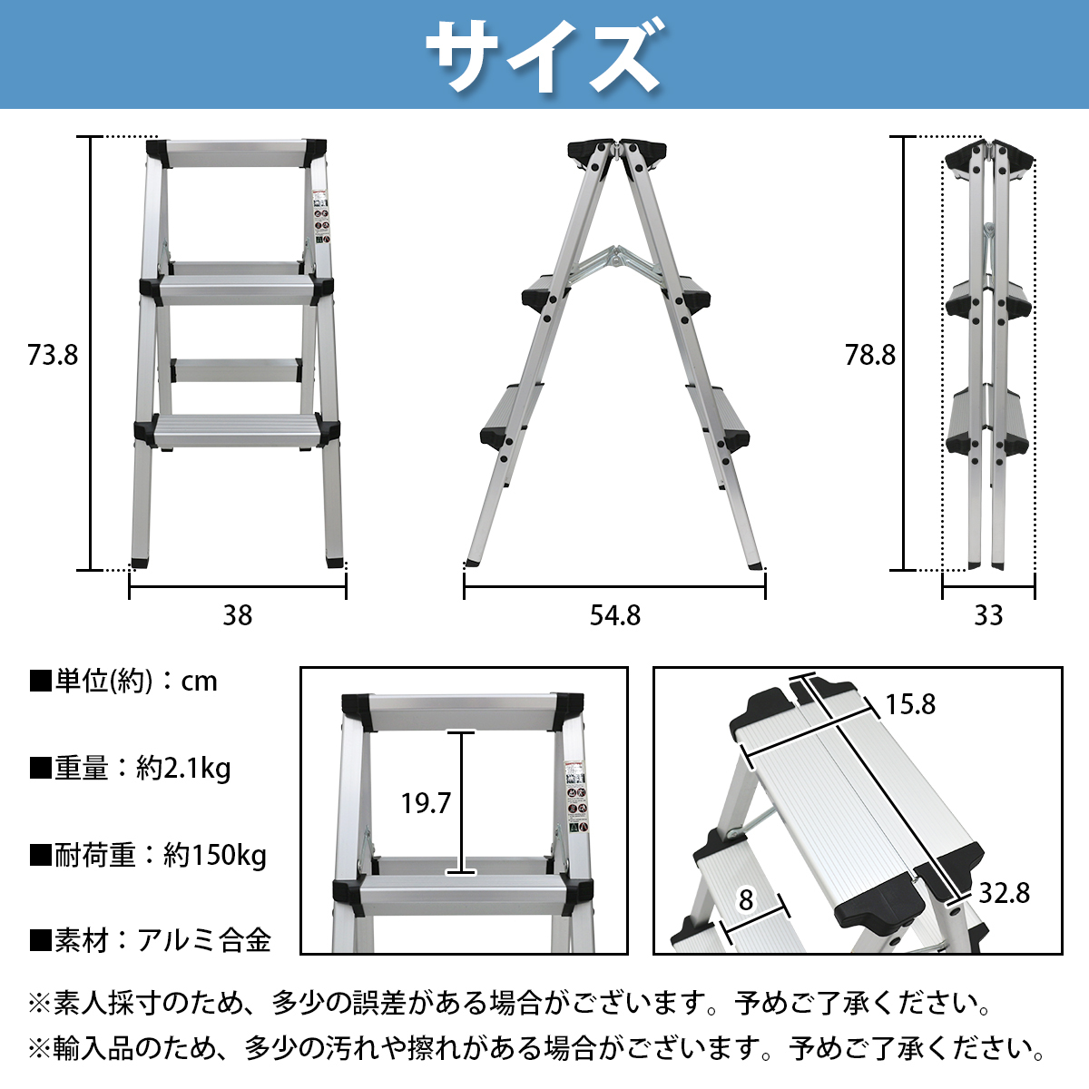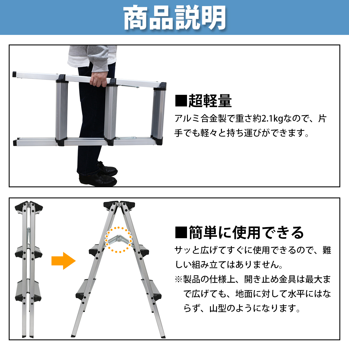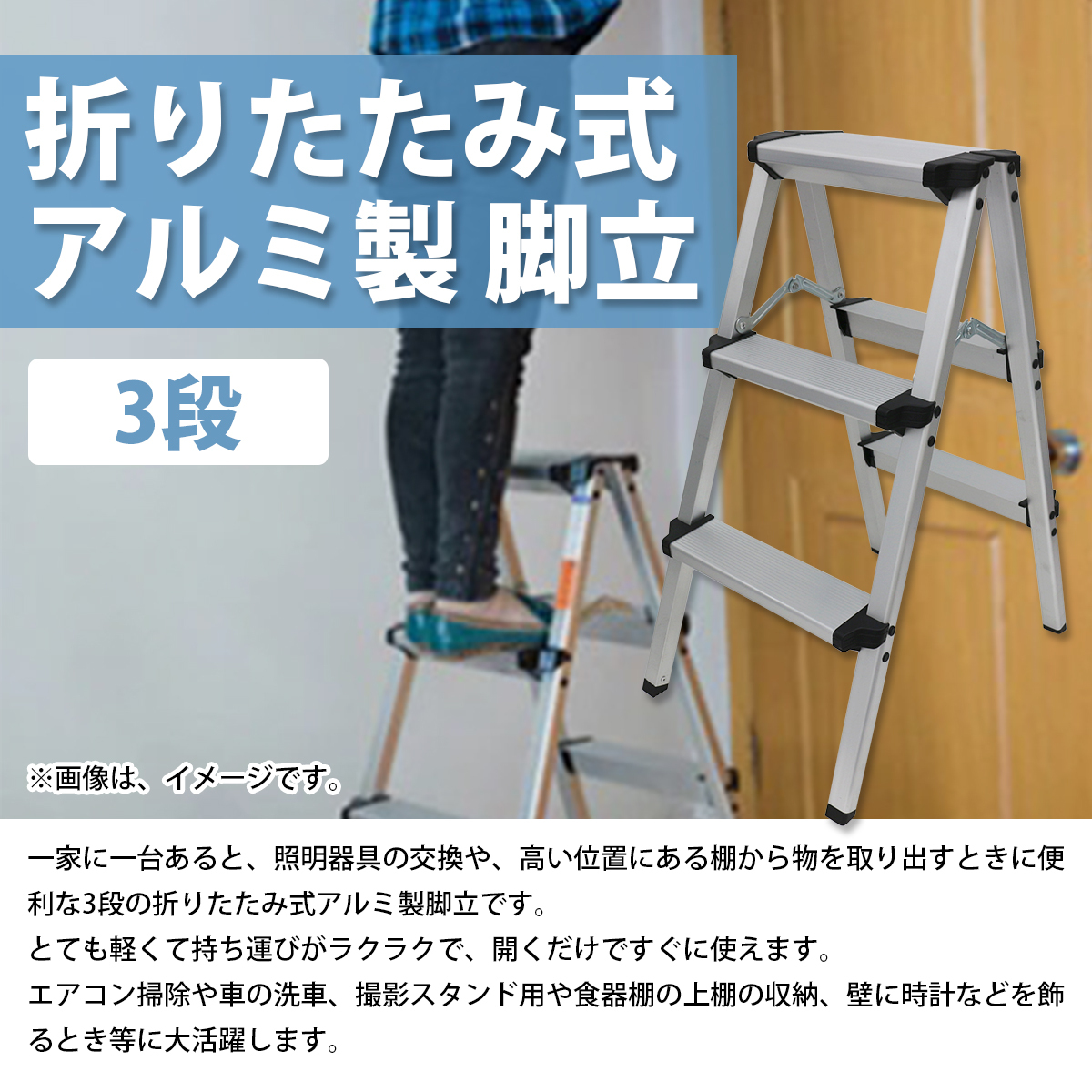 脚立 3段 梯子 アルミ 軽量 ステップラダー 足場 折りたたみ式 コンパクト 折り畳み ハシゴ ラダー キッチン 三段 ステップ