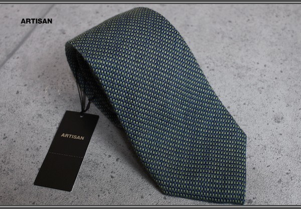 新品 アルチザン メン 秋冬 日本製 シルク ウール ニット ツイード ネクタイ/青黄緑/定価1.8万円/ARTISAN MEN/サンプル