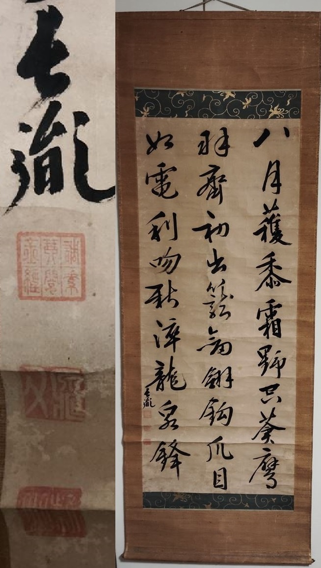 中国 掛軸 長胤 掛け軸 書道 調素琴閲金経 印