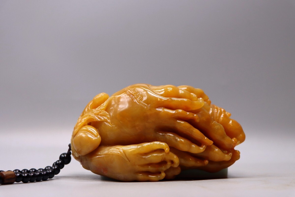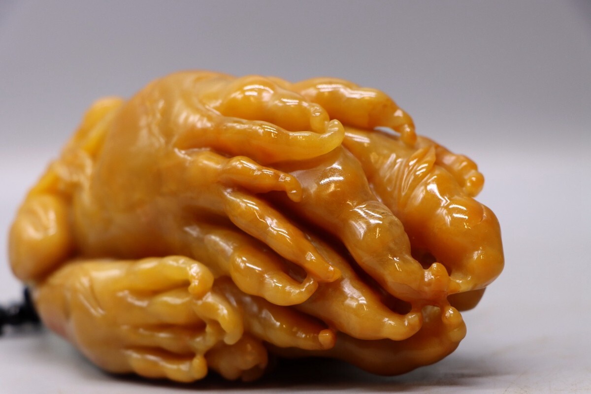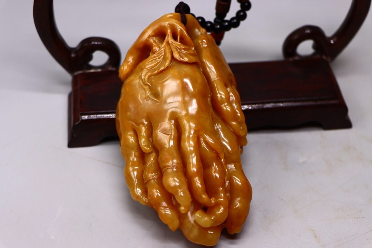 清代 御製 老寿山石 田黄石彫 大仏手把件【仁】極細工 手彫り 中国古賞物 古美術 蔵出