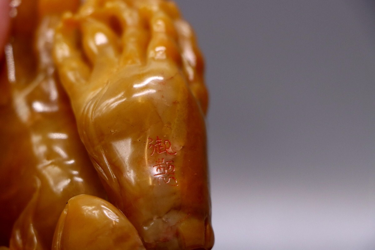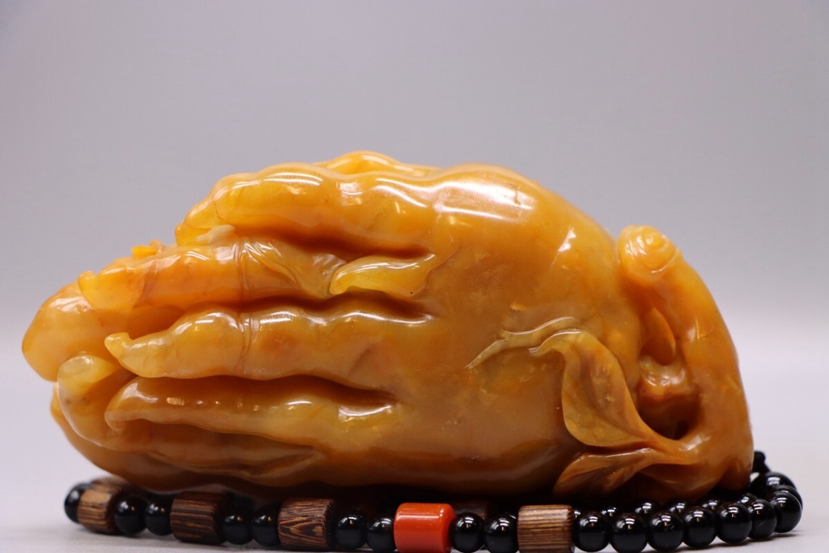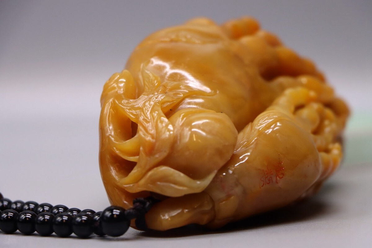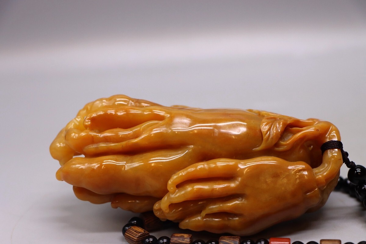 清代 御製 老寿山石 田黄石彫 大仏手把件【仁】極細工 手彫り 中国古賞物 古美術 蔵出